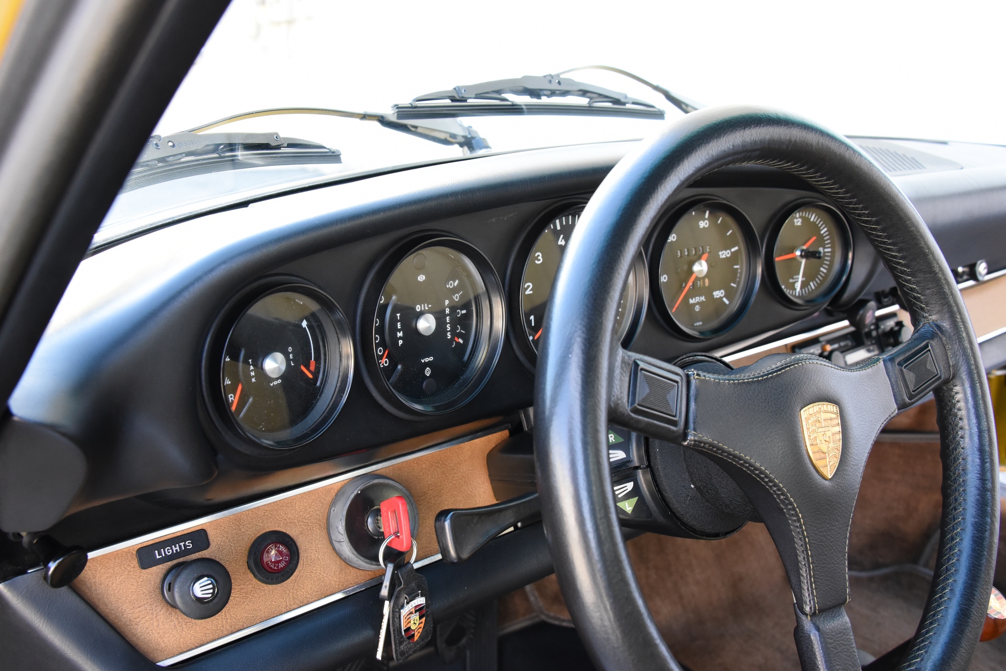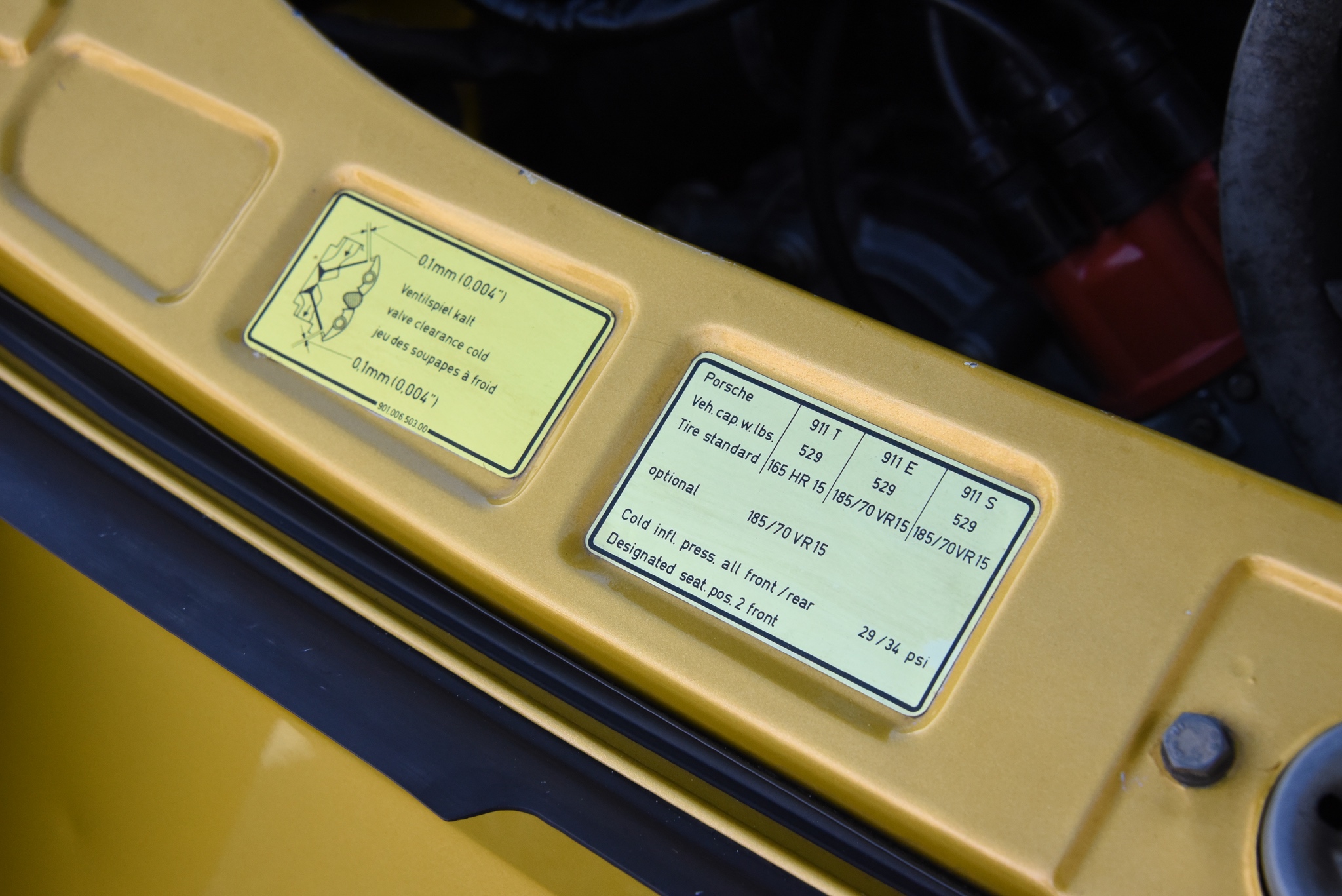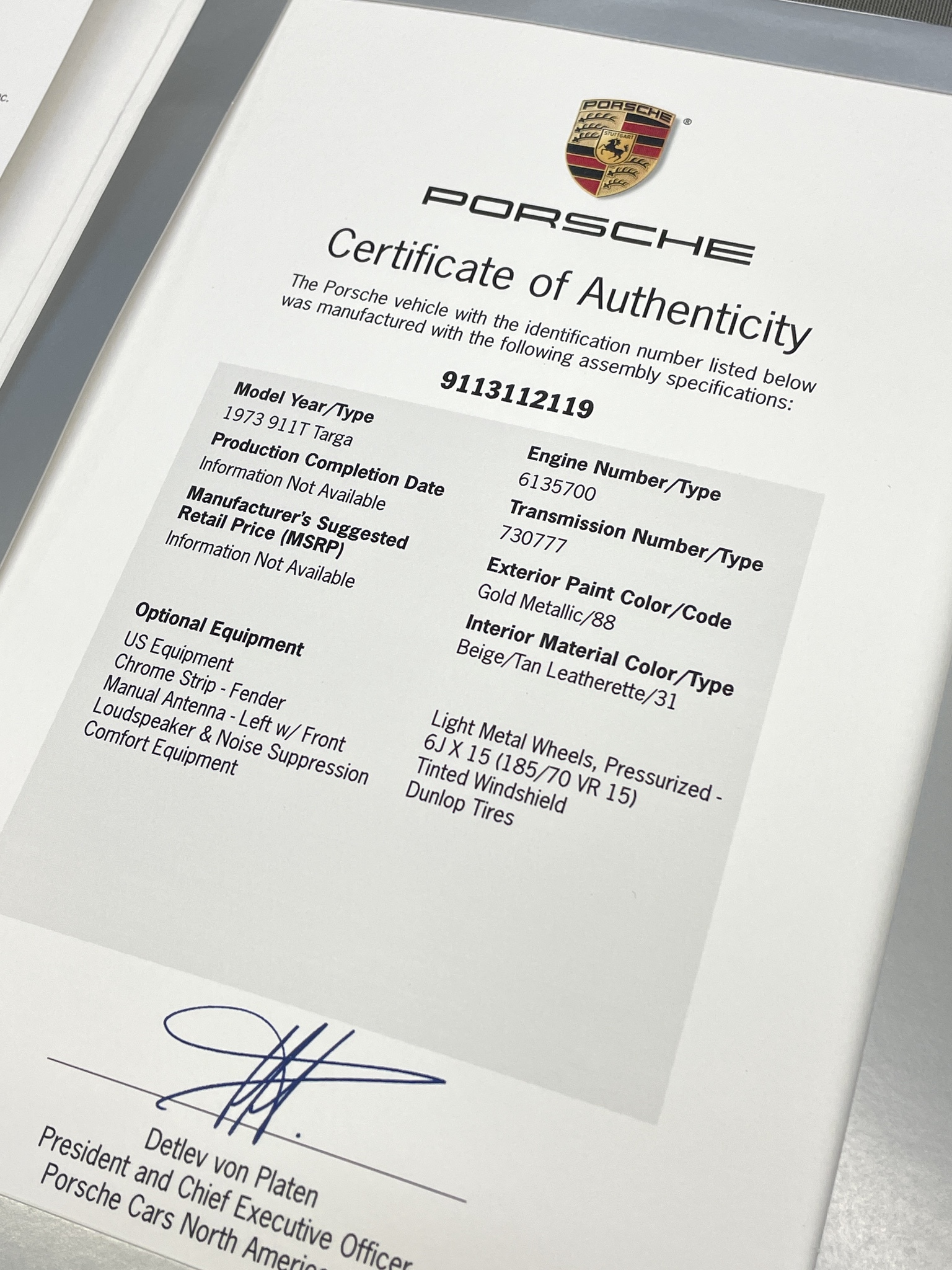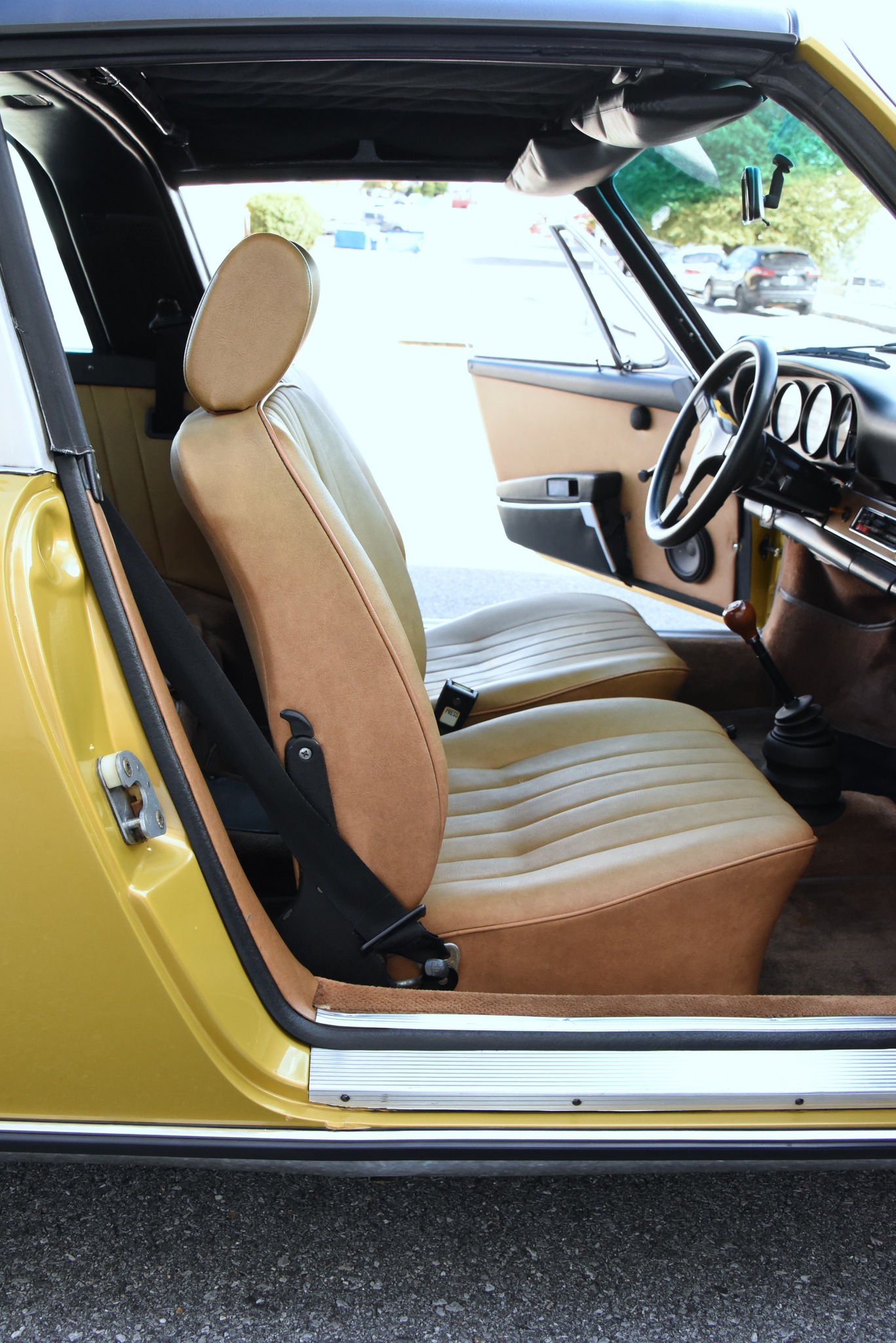 1973 Porsche 911T Targa with 85,000 miles in Gold Metallic (88) with Beige/Tan leatherette interior (31). Original engine and transmission and original paint color. In current ownership for 24 years. Very clean and well maintained car.